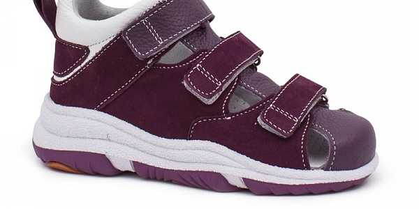 Верх и подкладка выполнены из натуральной кожи с замшевыми вставками, что исключает натирание и возникновение мозолей при активной ходьбе. Съёмная ортопедическая стелька с кожаным перфорированным покрытием оказывает комплексное лечебно-профилактическое воздействие на детскую стопу. Быстрая и удобная фиксация изделия реализуется посредством трёх липучек Velcro по подъёму.